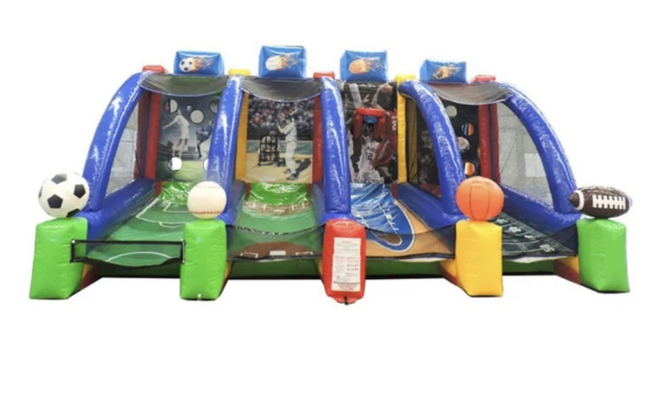 A versatile 4 in 1 inflatable interactive sports game rental that brings together multiple action-packed activities in one setup, giving guests several ways to play, compete, and stay active. This kind of rental is designed for fun, movement, and friendly competition, making it a great choice for parties, school events, field days, team-building activities, festivals, and family gatherings. With more than one game built into a single inflatable attraction, it helps keep the energy high and gives players the chance to switch things up without getting bored. It is the kind of rental that works well when you want something exciting, engaging, and easy for a crowd to enjoy, with a playful sports theme that encourages participation from both kids and teens.